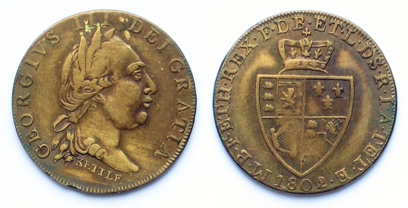 die englische Spade Guinea hat ja bekanntlich zahlreiche Ableger mit mehr oder minder kryptischen Zweckinschriften gezeitigt (s. obere Abb.). Nun ist mir aber ein Teil untergekommen (s. untere Abb.), dessen Legende den Monarchen sehr direkt anzusprechen scheint!? Wer aber war Mrs. / Miss Millie Edwards, die hinter dieser Ergebenheits-Adresse gestanden haben mag??? :roll: Die Frau Gemahlin des hohen Herrn wohl kaum, die hieß schließlich Charlotte ... und die wäre in Kenntnis dieser Adresse möglicherweise "not amused" gewesen. Ist das Teil also eine Anspielung auf ein zeitgenössisches Skandälchen (es gibt ja bei den Token diverse Beispiele für das, was wir "britischen Humor" nennen) ... oder war's "just for fun"?