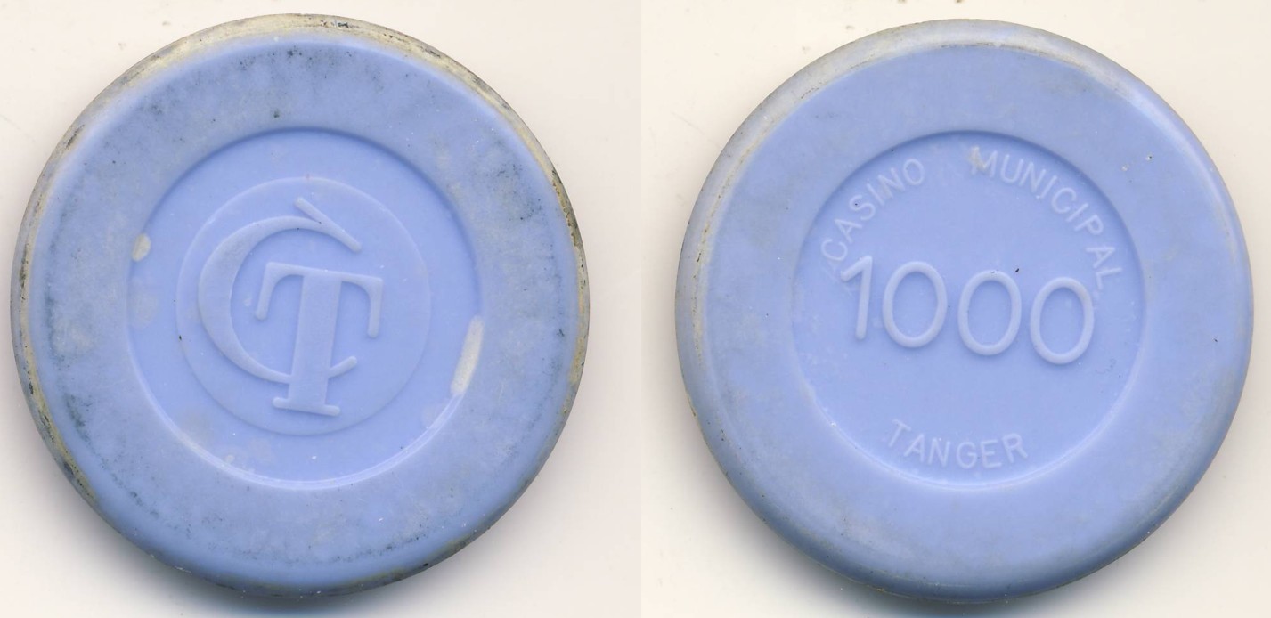 Die folgenden Jetons des Casino Municipal de Tanger sind zwar alles andere als schön, aber ein interessantes Zeugnis aus vergangenen Zeiten. Spätestens bei dem alten Plakat werde ich irgendwie an den Film "Casablanca" erinnert ... Der Herr auf dem Plakat rechts hält übrigens gerade (m)einen Jeton zu 200 Francs zwischen Daumen und Zeigefinger. ;)