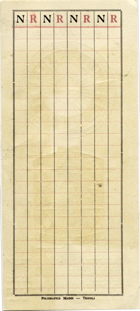 Das dritte Bild zeigt die Regelkarte des Roulettespiels dort. Sie wurde von "Poligrafico Maggi - Tripoli" gedruckt und stammt aus dem Nachlass vom US-amerikanischen Major General Bernard L. Robinson, der meines Wissens jedoch nicht in Libyen stationiert war.