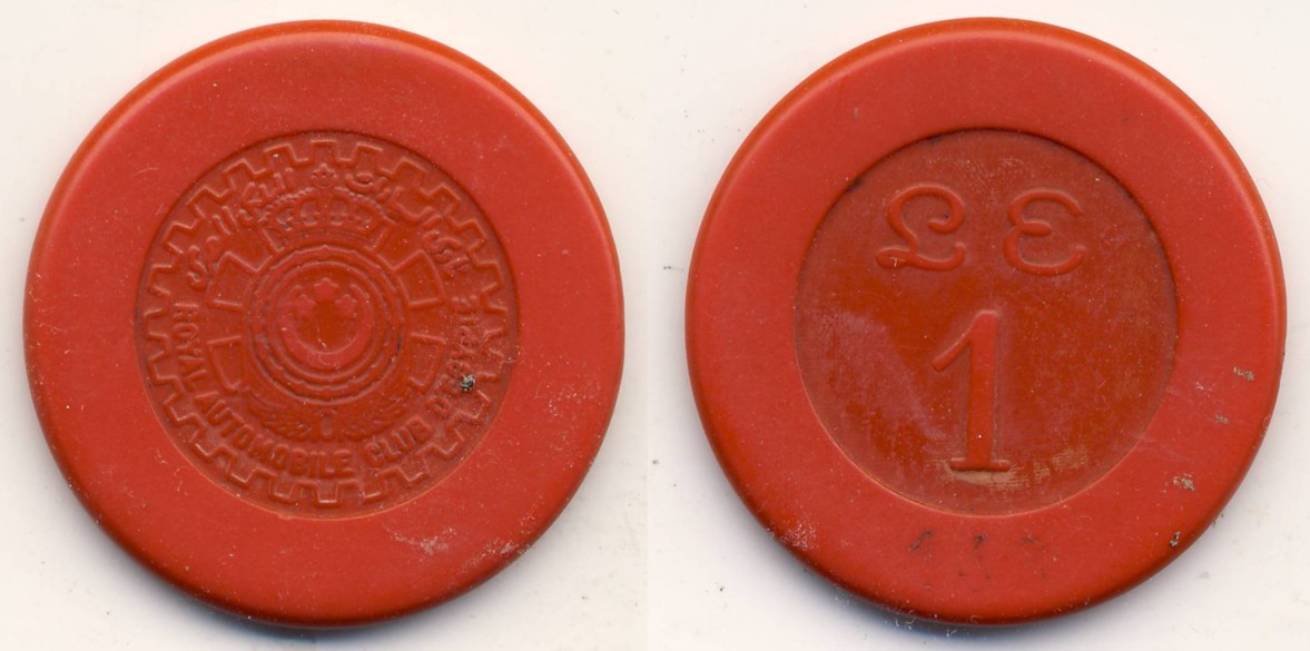 Heute geht es nach Ägypten. Der Jeton zu 1 ägyptischen Pfund gehört auf den ersten Blick nicht zu einem Casino, sondern zu einem Automobil Club. Der Royal Automobile Club d'Egypte (Man beachte die gemischt englische und französische Schreibweise!) wurde 1924 gegründet und befand sich im Zentrum in der Qasr al Nile Street. Es war ein exclusiver Club für die Elite unter den Autobesitzern, die ja ohnehin schon zu den Wohlhabenderen gehörten. Gleichzeitig war er auch der populäre Treffpunkt der Reichen und Schönen im Kairoer Nachtleben. "Logischerweise" gehörte somit dann auch ein Casino zu diesem Club. Das Gebäude wurde von einem italienischen Architekten in einem Mix aus Modernismus und Neoislamismus. entworfen.