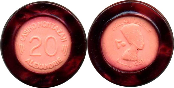 Wir bleiben in Ägypten. Auch das Casino Montazah in Alexandria hatte anscheinend schönes Spielgeld. Dieser Jeton hier ist das einzige mir bekannte überlebende Stück. Über das Casino habe ich noch nicht so viel in Erfahrung bringen können. Der Bau war wohl zunächst Palast, dann Hotel. Vielleicht kann ja jemand helfen!