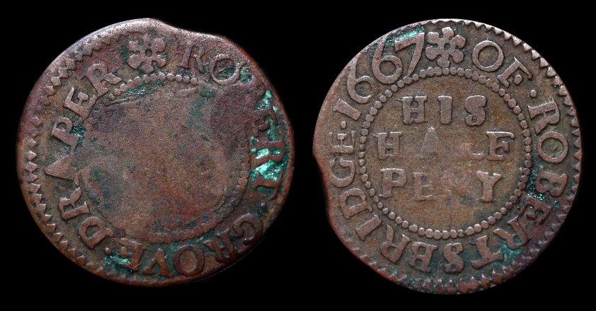 Geprägt in Dublin ist dieser Token in Mengen auf der Isle-of-Man unter der Bezeichnung "Butchers Halfpence" umgelaufen, vermutlich weil der Herausgeber zur Gilde der Fleischhauer gehörte. Er hatte die Genehmigung zur Prägung seiner Halfpennies erwerben können, nutzte sie jedoch dazu, seine eigenen Token in erheblichem Umfang zu fälschen und in Umlauf zu bringen. Wenn ihm diese Fälschungen dann zur Einlösung vorgelegt wurden, lehnte er sie ab mit der Begründung, es handle sich um Fälschungen. Er ging dabei anscheinend so geschickt vor, daß ihm nichts nachzuweisen war, und der Stadt entstand ein erheblicher Schaden.