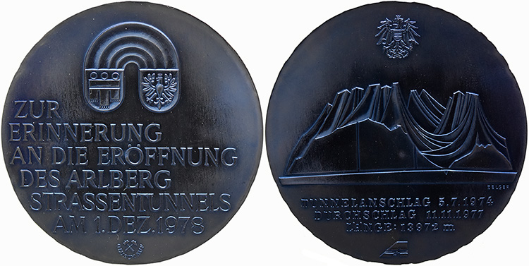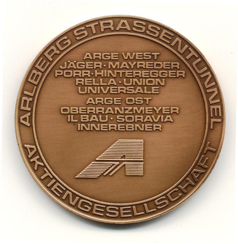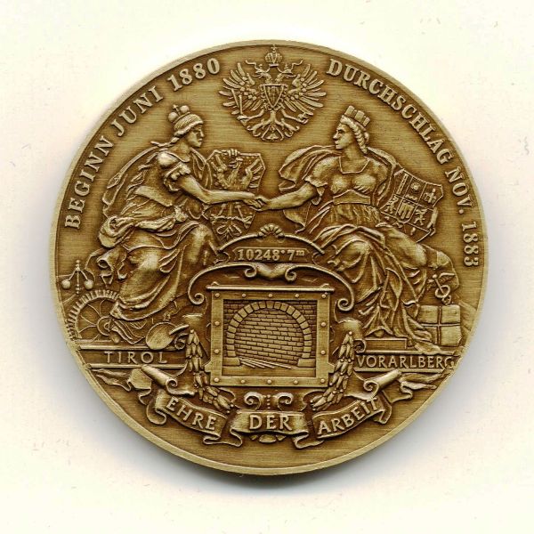 Revers: Nachbildung der Medaille von 1884 zur Eröffnung des Arlbergeisenbahntunnels
