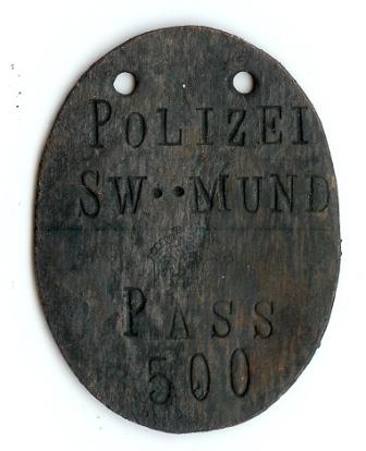 Ich stelle die Marke nochmals in gereinigtem Zustand vor. Es handelt sich um eine ganz frühe Form der Eingeborenen-Passmarken von DSWA! Ob es sich dabei um eine der bei Otto Günther in Swakopmund hergestellten Marken handelt, ist noch nicht geklärt. Vermutlich wurden diese Marken aufgrund lokaler Initiative von Beamten in Auftrag gegeben. Hierhin gehören wahrscheinlich auch die beiden, bereits vorgestellten Marken, der Ortspolizeibehörde von Otjimbingue. Es freut mich besonders, daß durch einen großzügigen Gönner diese Marke hier in SWA bleibt und, zumindestens zeitweise im Original (und ständig als Kopie) in der zukünftigen Sonderausstellung "Das Passwesen von Deutsch-Südwestafrika bis Namibia" im Swakopmunder Museum zu bewundern sein wird.