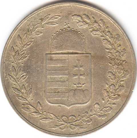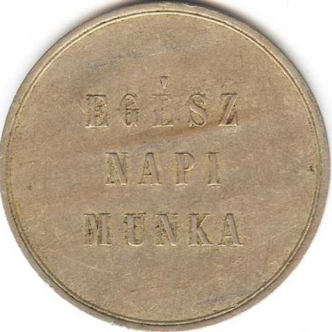 Francis Joseph I., Purpose coin Tobacco factories Bratislava - Mint.: , Av.: In the middle of the Austro-Ugrian crowned coat of arms, wreath around. (V strede korunovaný rakúsko-uhorský erb, okolo veniec.), Rv.: Text EGÉSZ/NAPI/MUNKA in three lines. (Text v troch riadkoch EGÉSZ/NAPI/MUNKA.), Weight: 12,05 g, Diameter: 37,3 mm, Metal: Ae, References: Z.L.: 192