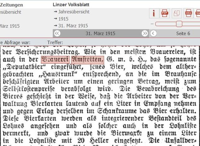 Der Zeitungsbericht beschreibt Deputatmarken wie sie in den Brauereien üblich waren.