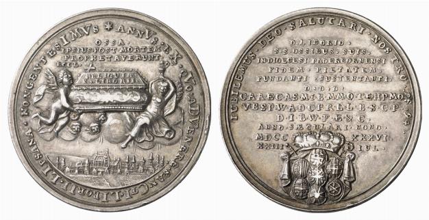 Das gezeigte Stück zur 1100-jährigen Überführung der Gebeine von 1936 (19,76 g, / 36,54 mm Durchmesser) trägt auf dem Rand die Aufschrift: “Bayer. Hauptmünzamt Feinsilber“. Schwede katalogisiert das Teil unter 4.00.04. Er schreibt: