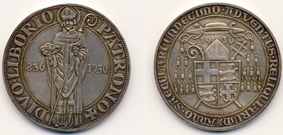 Was hat das alles mit Münzen zu tun und wieso gehört ein solcher Sermon in ein numismatisches Forum? Na ja, es gibt auch ein paar Münzen und Medaillen aus Paderborn, die mit dem heiligen Liborius zu tun haben. Arnold Schwede hat anno 1999 ein kleines Büchlein herausgegeben: