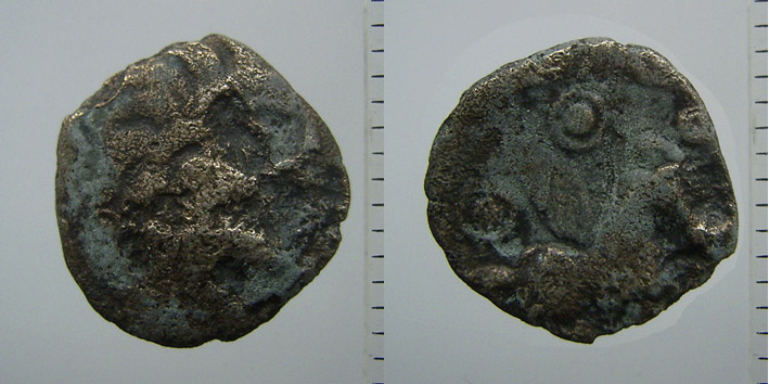 im Juli 2007 ersteigerte ich über ebay eine Silbermünze der Cantii, die zwar schon etwas von der Korossion angeknabbert war, aber damals noch ganz nett aussah (die Photos sind vom August 2007, jetzt kleingerechnet):