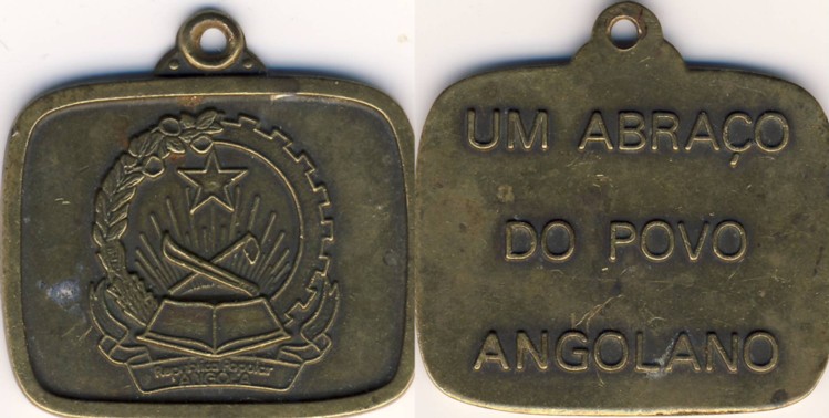 Angolaner scheinen Medaillen zu lieben. Auch auf den ersten Jahrestag der Republik wurde einen Medaille mit dem Präsidenten herausgegeben. Die Machart erscheint mir wenig europäisch, vielleicht wurde sie ja sogar in Angola selbst hergestellt ...