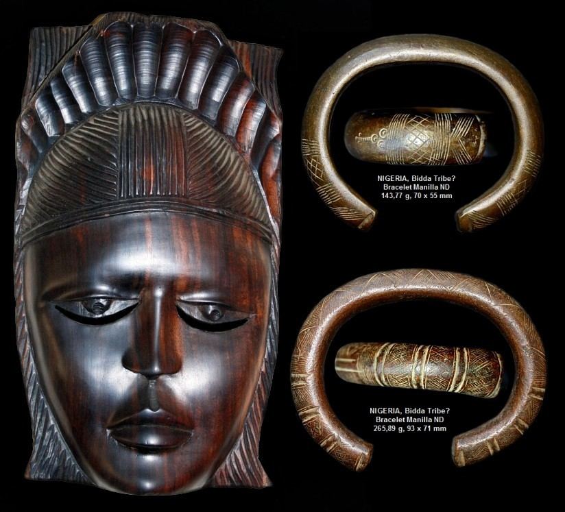 Mit zwei weiteren Manillen und einer Maske (18 x 30 cm) aus dem Norden Nigerias, die alle zu dem Stück passen, das ich bereits weiter oben gezeigt habe, ist dann die Gruppe aus meiner Sammlung hier vollständig vorgestellt.