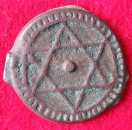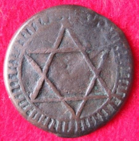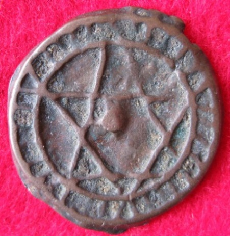 Beim vierten Stück bin ich mir recht sicher, dass es aus Fes kommt. Gewicht und Durchmesser könnten auf ein Stück zu 1 Falus des zweiten Standards (1250 - 1269) unter Moulay Abderrahman hindeuten. Mehr gibt die Scheibe nicht mehr her ...
