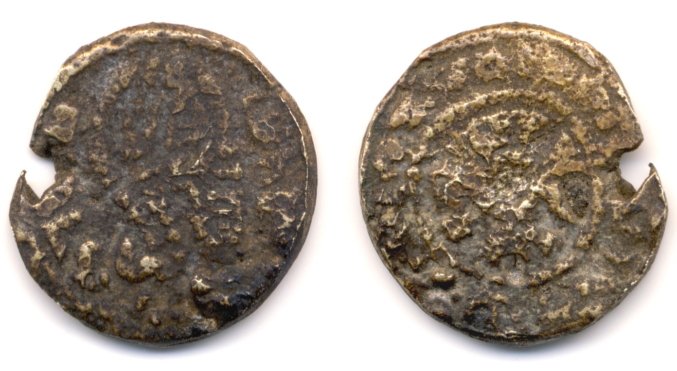 Das Ding wiegt übrigens 1,74 Gramm und mißt 13,0 - 14,0 mm im Durchmesser. Möglicherweise aus Bronze, aber vielleicht auch aus einem anderen Metall.