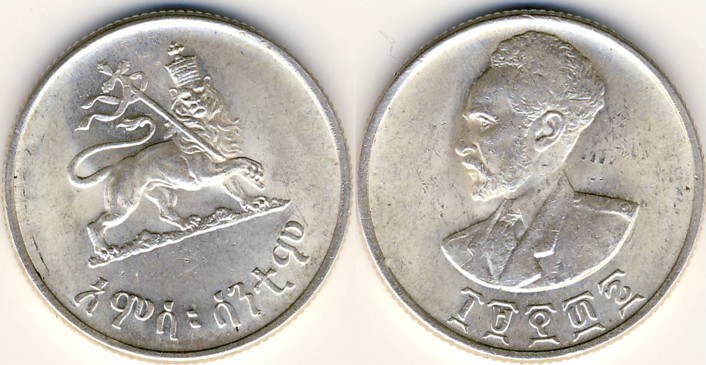 (And mention also, for fun, that the Ethiopian series of EE1936 was designed by Gilroy Roberts, who designed the obverse of the 1964 Kennedy half dollar.)