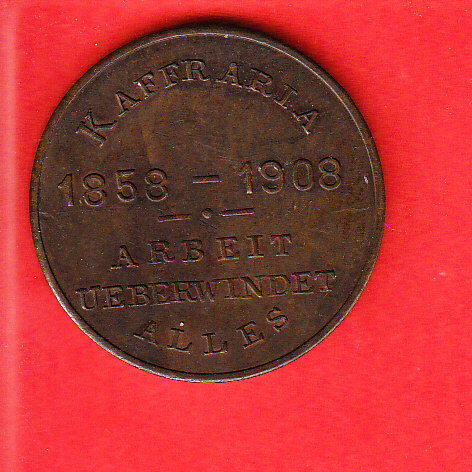 Hier eine Medaille aus Kaffraria "50 Jahre Landung Deutscher Ansiedler in Süd Afrika. 1858-1908"