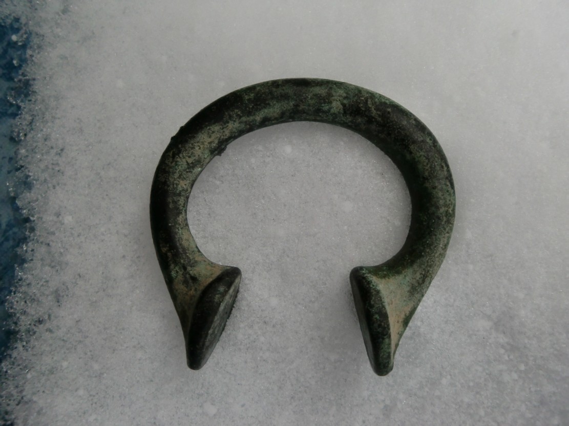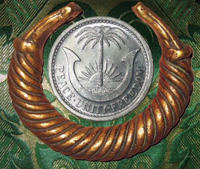 Also bleibt nur noch Afrika übrig. Was wir hier sehen, ist eine Manilla. Ein Armreifen, wie er jahrhundertelang in der Küstenregion des westlichen Afrikas (heutzutage in etwa eingegrenzt durch die Staaten von Guinea bis Kamerun) fragwürdige Verwendung als Geldersatz fand.