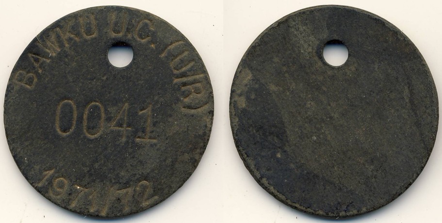 Die Mamprusi-Token sind ja eindeutig Head-Tax-Token aus der Kolonialzeit. Viel mehr Probleme machen mir allerdings die Bakelit-Token der Bawku. Diese stammen deutlich aus nachkolonialer Zeit. Hat der ghanaische Staat organisatorisch auf koloniale Gepflogenheiten zurückgegriffen? Oder dienten sie einem völlig anderen Zweck? Und wenn ja, dann welchem? 1971/72: 37,0 mm 1,93 g Bakelit 1972/73: 37,2 - 37,3 mm 2,10 g Bakelit
