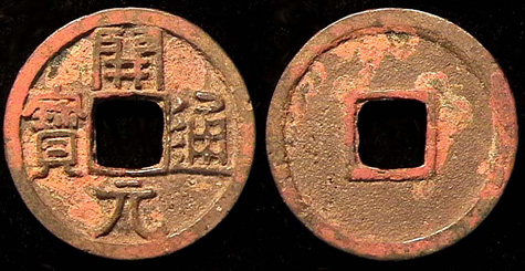 Das mittlere zeigt eine Münze der Nördlichen Song Dynastie vom Typ: