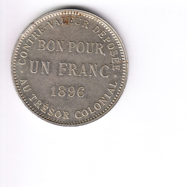 Ein 1 Franc Essai von der "Ile de la Reunion" (ehem. französische Kolonie). Lecompte 45 (Matt)