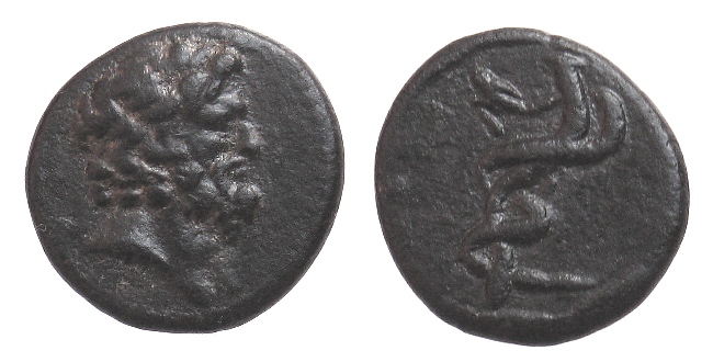 Av.: Kopf des bärtigen Asklepios mit Lorbeerkranz n. re.
