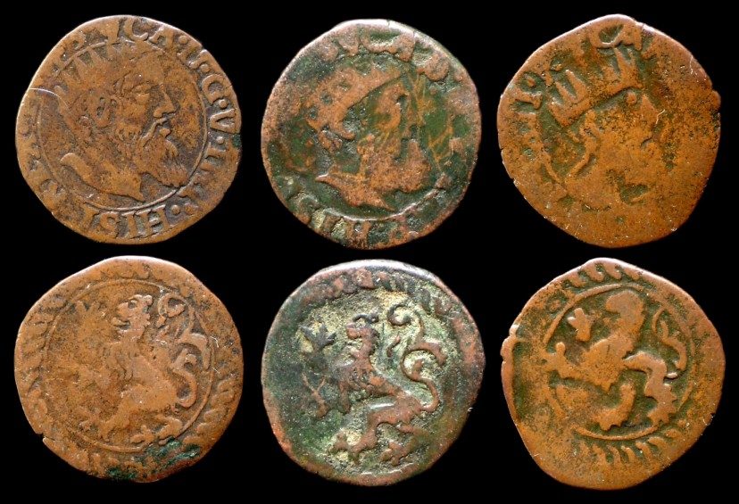 Ein Blick in den Schrötter gab dann Auskunft, daß die Courte zunächst in Billon, dann unter Karl V. nur noch in Kupfer (deshalb „schwarze“ Courte) ausgeprägt wurde und 3 Mijt / Miten galt. Dies war eine recht unappetitliche Münzbezeichnung für das kleinste niederländische Nominal: Es bedeutete „Milbe“.