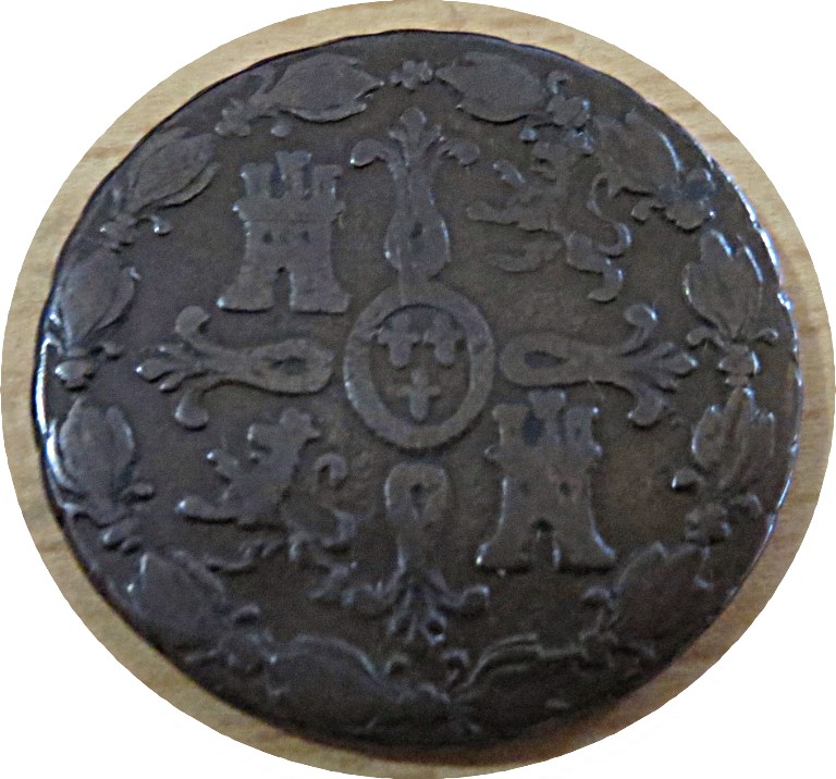 Was mir jetzt zufällig auffiel - auf meiner spanischen Münze von 1826 8 Maravedi Ferdinand VII. ist nicht der übliche Prägungsbuchstabe "J" eingeprägt!