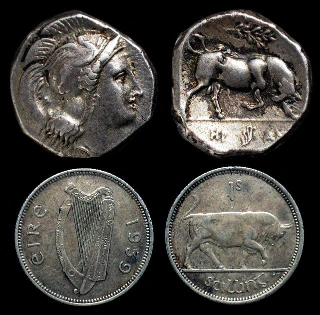 Greift der Löwe historische Münzbilder auf? Ähnliches würde mich auch bei der Münze von villa66 interessieren. Gibt es eine griechische Münze aus Sizilien, die direktes Vorbild war? Oder ist das Motiv frei weiterentwickelt?