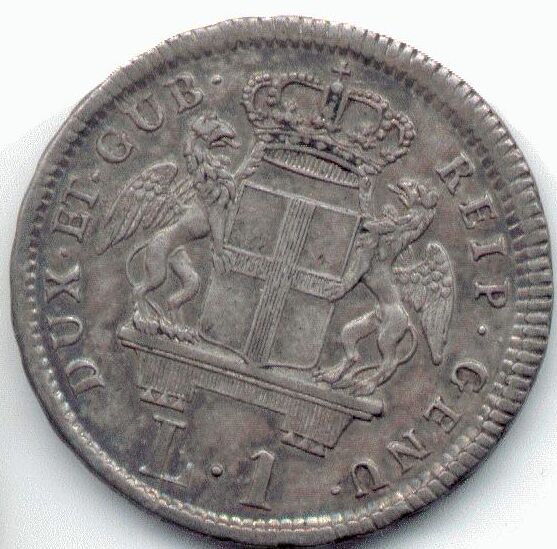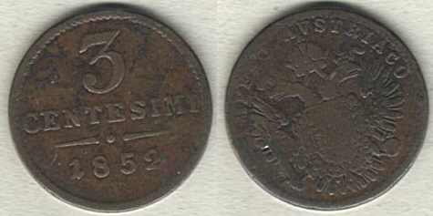 Venedig (Mzz. V und Anker). Die Öllampe ist das Mzz. des Münzmeisters Luigi Manfredi, welcher die Stempel fertigte und zugleich Direktor der Mailänder Münze war.