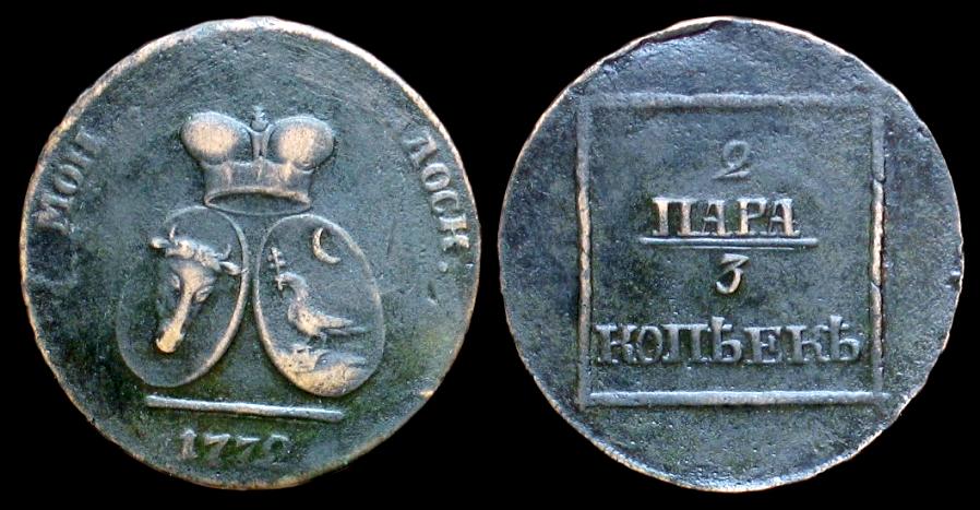 Die Anfänge der neuzeitlichen Münzprägung dieser Region fallen in die Zeit des russisch-türkischen Krieges 1766 - 1774. Rumänien gab es noch nicht, nur die Donaufürstentümer Moldau und Walachei unter osmanischer Oberhoheit. Deren Wappen finden sich auf den frühesten Münzen, von denen hier die Rede sein soll - den Kopf des Auerochsen (Moldavien) und den Adler mit dem Kreuz im Schnabel vor der Mondsichel (Walachei). Geprägt wurden diese Münzen aus dem Metall erbeuteter osmanischer Kanonen in Sadagura, und nach diesem Ort erhielten sie ihren Namen -