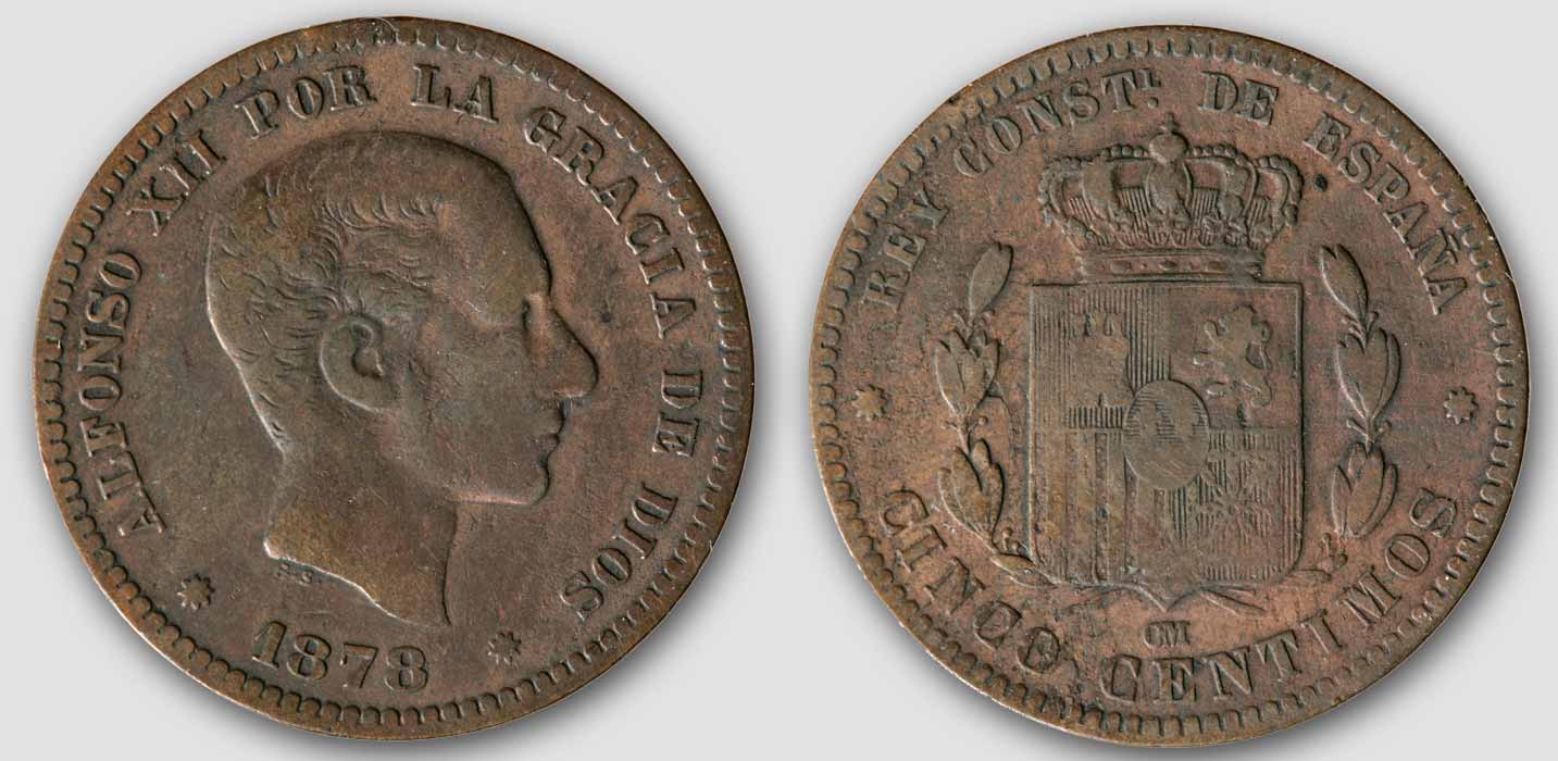 Cinco (5) Centimos, 1878, S#161, Cu