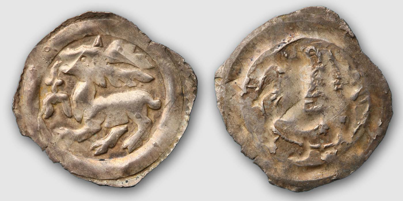 Der Hirsch mit dem Lebensblatt ist kein heraldisches Element sondern ein Symbol. Der Hirsch steht hier steht hier für Anmut, Stolz, Schönheit und Kraft, in der christlichen Deutung für die Erlösung durch Christus. Das Erneuern der Geweihstangen deutet auf Wachstum - Sterben - und "Wieder-werden" (Auferstehung) hin. Deshalb gibt es aus christlicher Sicht auch viele Darstellungen mit dem Kreuz zwischen den Geweihstangen. Das dreiblättrige Kleeblatt streht in der christlichen Symbolik für die Dreifaltigkeit Gottes; allgemein gilt der Klee als Sinnbild der Lebenskraft und des Glückes (vierblättriger Klee). Ob nach der ursprünglichen Deutung dieses Lebensblatt immer ein Kleeblatt gewesen ist, muss hinterfragt werden. Es gibt auch andere Lebensblätter, die z.T. in der Geschichte noch viel weiter zurückreichen, wie etwa das Gikgoblatt. Der Ginkgobaum wurde in Asien wegen seiner Widerstandsfähikeit (gegen Feuer, Bakterien, Pilze) als heilig verehrt und ist auch eine bekannte Heilpflanze. Das Lebensblatt auf unserer Münze hat allerdings mit dem Ginkgblatt keine Ähnlichkeit.