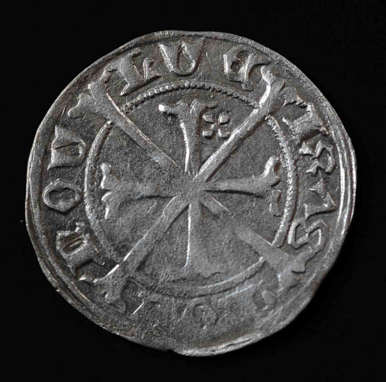 Es waren auch noch ein Sigmund Etschkreuzer CNA J 45 (W3) und 4 Pfennige im Spät-MA-Münzbeutel.