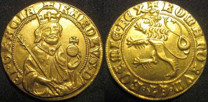 Es sollte ein Dukaten unter Karl IV. (1346-1378) sein.