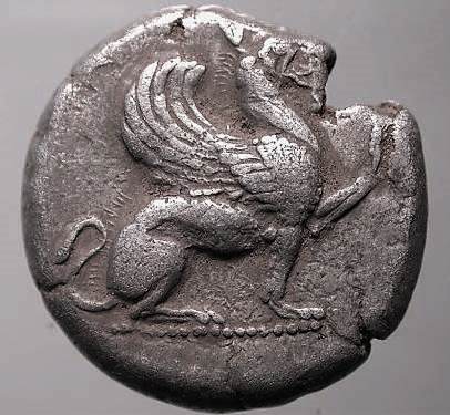 wir haben keinesfalls auf die Römer vergessen, nur wusste ich als "Nur gelegentlich Römer Sammelnder" nichts davon, dass die Greifen auch im Römerreich ihr (Un-)wesen trieben. Vielen Dank für die gezeigten Stücke und auch für alle anderen Beiträge. Ich freue mich, dass der Thread nun doch so schön in Schwung kommt. Eine paar Teos-Stater steuere ich nun aus meinem Fotoarchiv bei. Ich weiß nicht mehr wann und wo ich sie heruntergeladen habe.