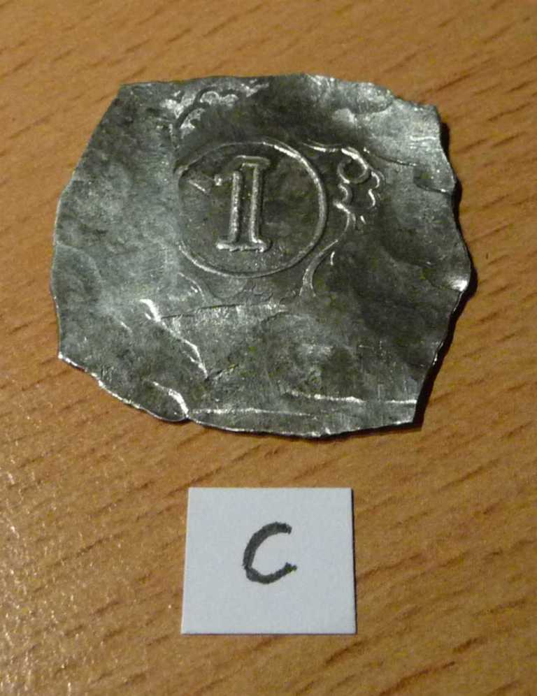 Wie das bewerkstelligt worden war, war mir ein Rätsel. Es wäre sicherlich viel einfacher gewesen, etwas von den „zipfeligen Rändern“ abzuschneiden oder abzuzwicken. Das wurde auch (bei annähernd runden Münzen) praktiziert und nennt sich „Beschneidung“.