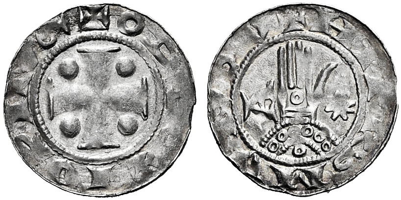 Diese Silbermünze wird Heinrich dem Fetten (1083-1101) aus Northeim, Niedersachsen zugeordnet.