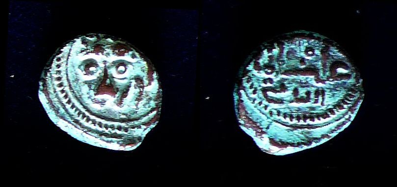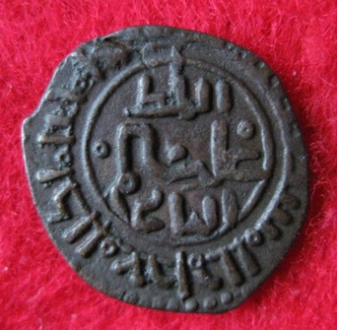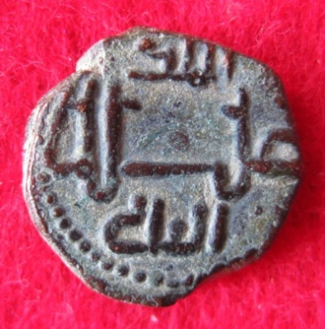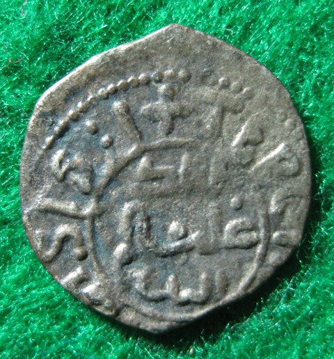 Nachstehendes Foto zeigt eine winzige Silbermünze, die als "Teil eines Dirhems" bezeichnet wird. Das Gewicht liegt zwischen 0,7 und 0,9g, und der Durchmesser zwischen 9 und 10 mm [Spahr 116].