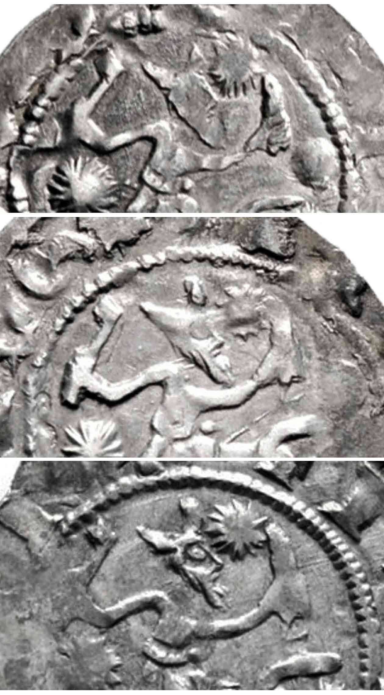 Die Aversseite mit der segnenden Hand zwischen zwei Türmen bezieht sich auf das Gründerkloster Vornbach. Die romanische Kirche in Vornbach hatte eine Zweiturmfassade und es wird dieses Bild für die erste neunkirchner Münze beibehalten. Auf dem Epitaph der Himiltrud in Formbach hält sie in einer Hand das Modell dieser Kirche, in der anderen hingegen den Stifterhandschuh. Der Handschuh ist eine Insignie wie Krone und Szepter, im kirchlichen Bereich bereits im 8. Jahrhundert für Bischof und später auch für Äbte verliehen, sogar päpstlich bestätigt. Er gilt auch als Zeichen des Königsbanns, für eine unter besonderen Schutz stehende Stätte, das heißt Sonderfriede für die Abhaltung eines Marktes. Der Handschuh als Symbol für die Belehnung findet damit eine weitere Bestätigung. Die Münze Koch 39b mit zwei Händen zwischen den Kirchtürmen zeigt die doppelte Belehnung durch den König und den Papst. Die Münzen mit einer Hand K33-38 mit dem Kentaurenkampf im Revers sind kein königliches, weltliches sondern ein symbolisch religiöses Bild. Die sehnende Hand und Kirche ist für die Münzen vor 1140 bestimmend.