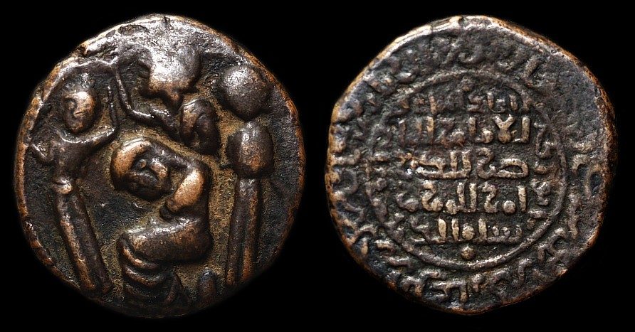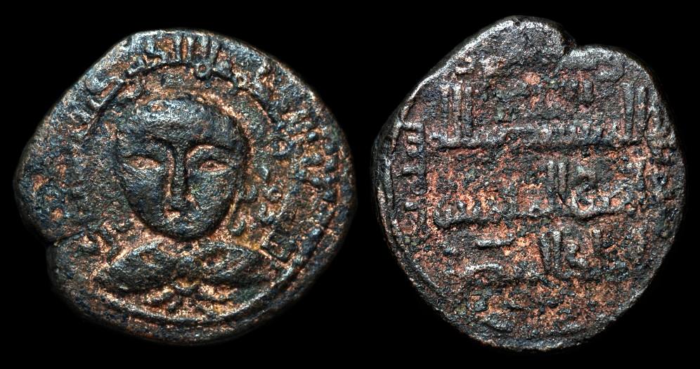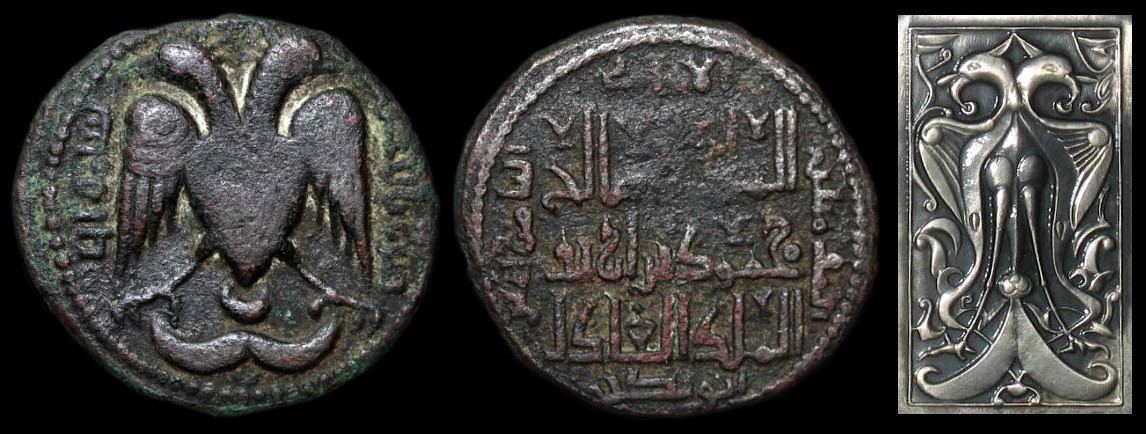 Zu diesem Münztyp gibt es einige weitere Informationen. Er wurde geprägt unter Husam al-Din Yuluq Arslan (i.e. "der kahle Löwe") in zwei sehr deutlichen Varianten, datiert 589 bzw. 590. Die erste Version der beiden Varianten ist die Revers-Legende in dreizeiliger Schrift. Diese erste Version nennt Namen und Titel des Abbassiden-Kalifen al-Nasir.