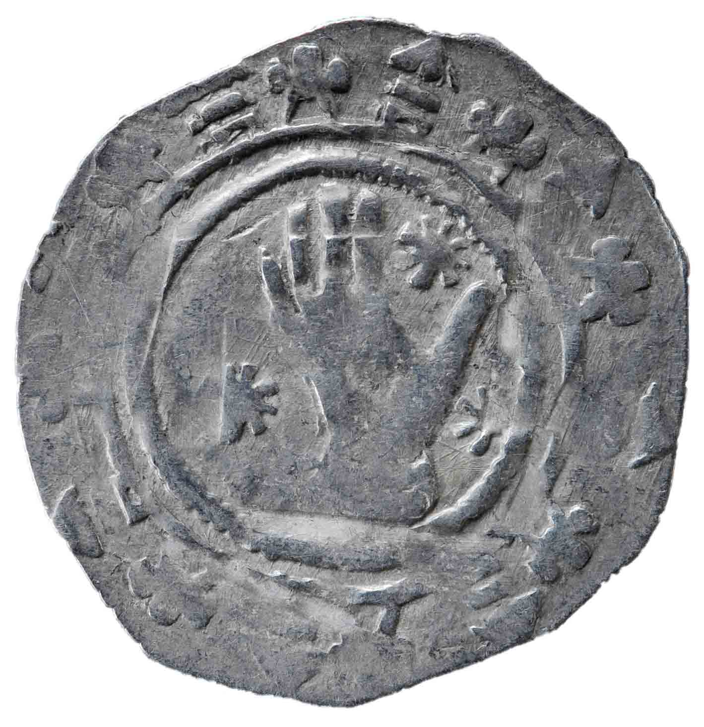 Dieser "Manus dei" (Hand Gottes) Pfennig ist unvergleichbar seltener, als die übrigen Handpfennige, von denen doch eine größere Zahl aufgetaucht ist. Das hier gezeigte Exemplar ist das einzige, das mir bisher aufgefallen ist.