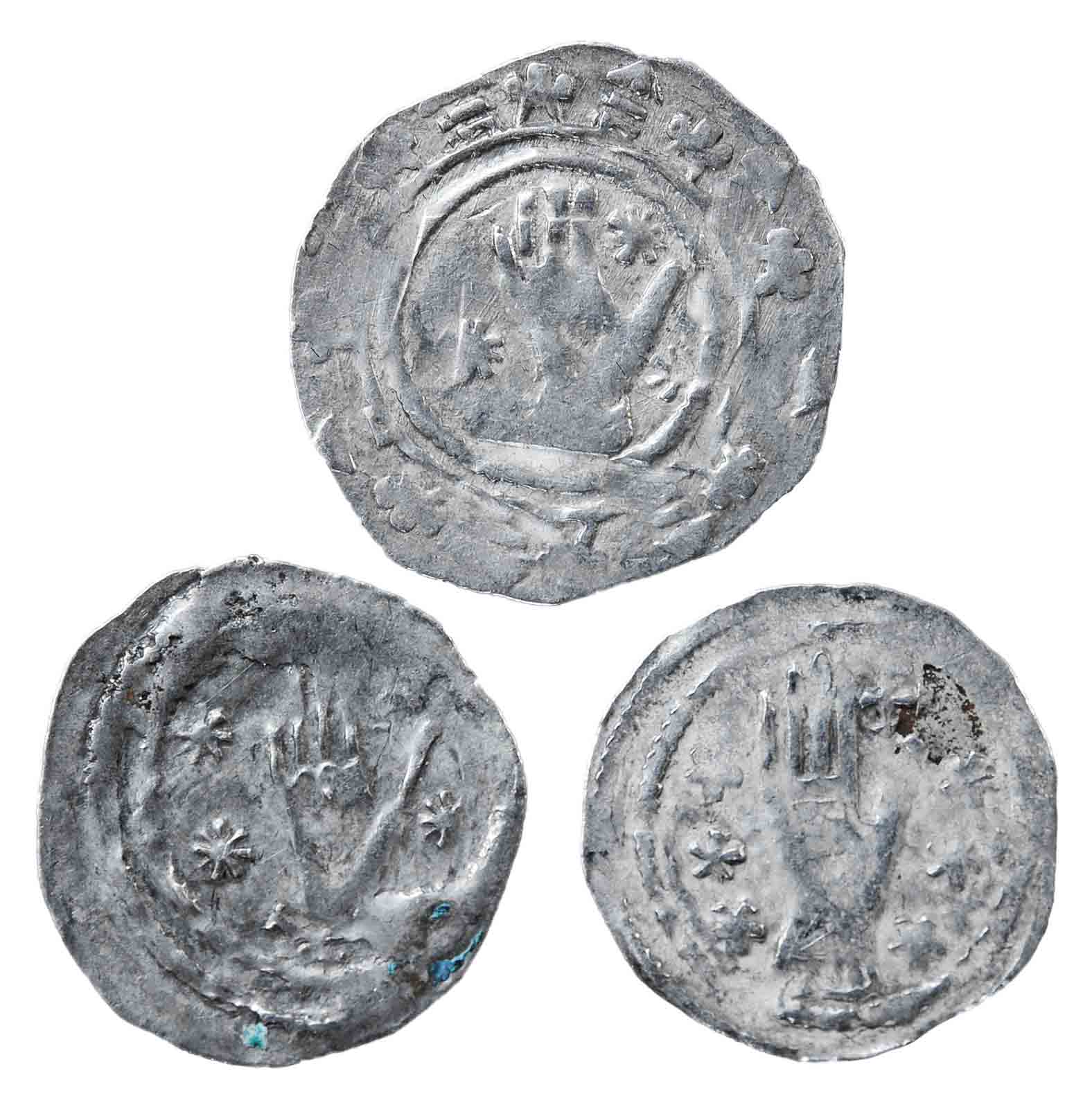 Habe nun auch ein Vergleichsfoto von zwei "normalen Manus dei" Pfennigen (unten), im Gegensatz zu jenem von Künker (Auktion 281) erwähnten