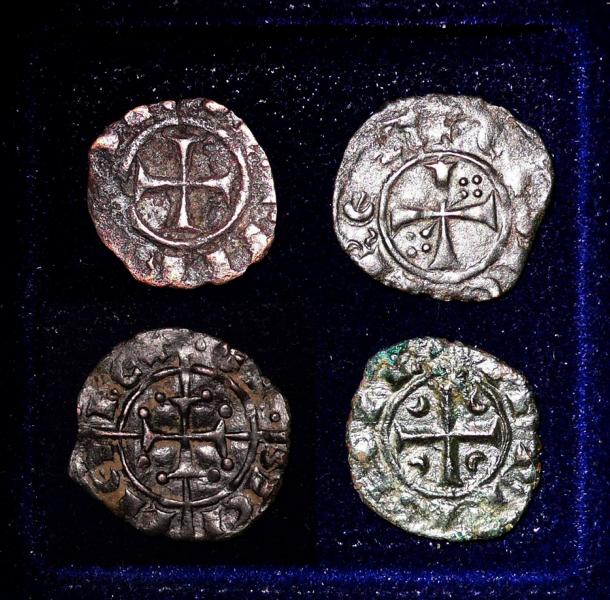 Es handelt sich um vier Billon-Denare (z.T. sieht das mehr nach Kupfer aus!) von Konradin (Corradino bzw. Corrado II.) (1254-1258), der zum einen von seinem Onkel Manfred des sizilianischen Throns und zum anderen von Karl von Anjou (im zarten Alter von 16 Jahren) des Lebens beraubt wurde. Auch er regierte - sofern man das überhaupt so nennen kann - nur vier Jahre. Doch davon später mehr.