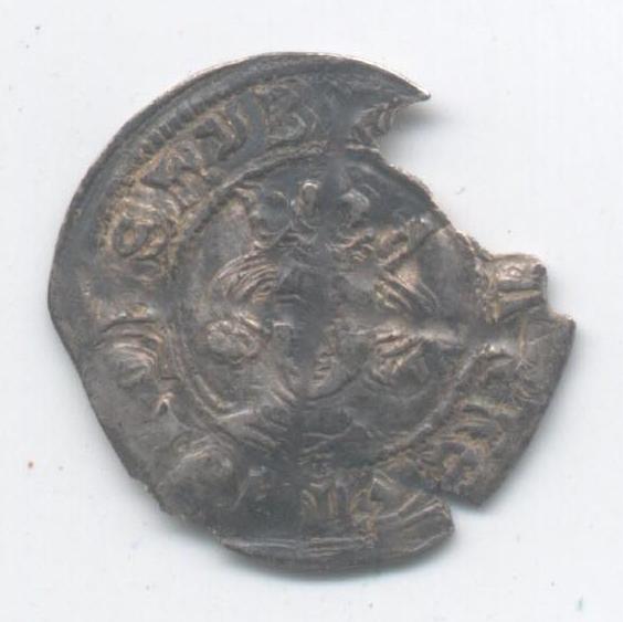 Um auch den mittleren Edward II. (1307-1327) nicht auszulassen, es gibt wenige Stücke, die sich ganz eindeutig ihm zuweisen lassen, hier ein Winzling von 0,3 g, 11 mm, ein Farthing. Die Erhaltung läßt leider Wünsche offen... Aufgrund der Inschrift EDWARDUS REX AN und der Form des Kreuzes zu Beginn der Inschrift ein North 1070/2.
