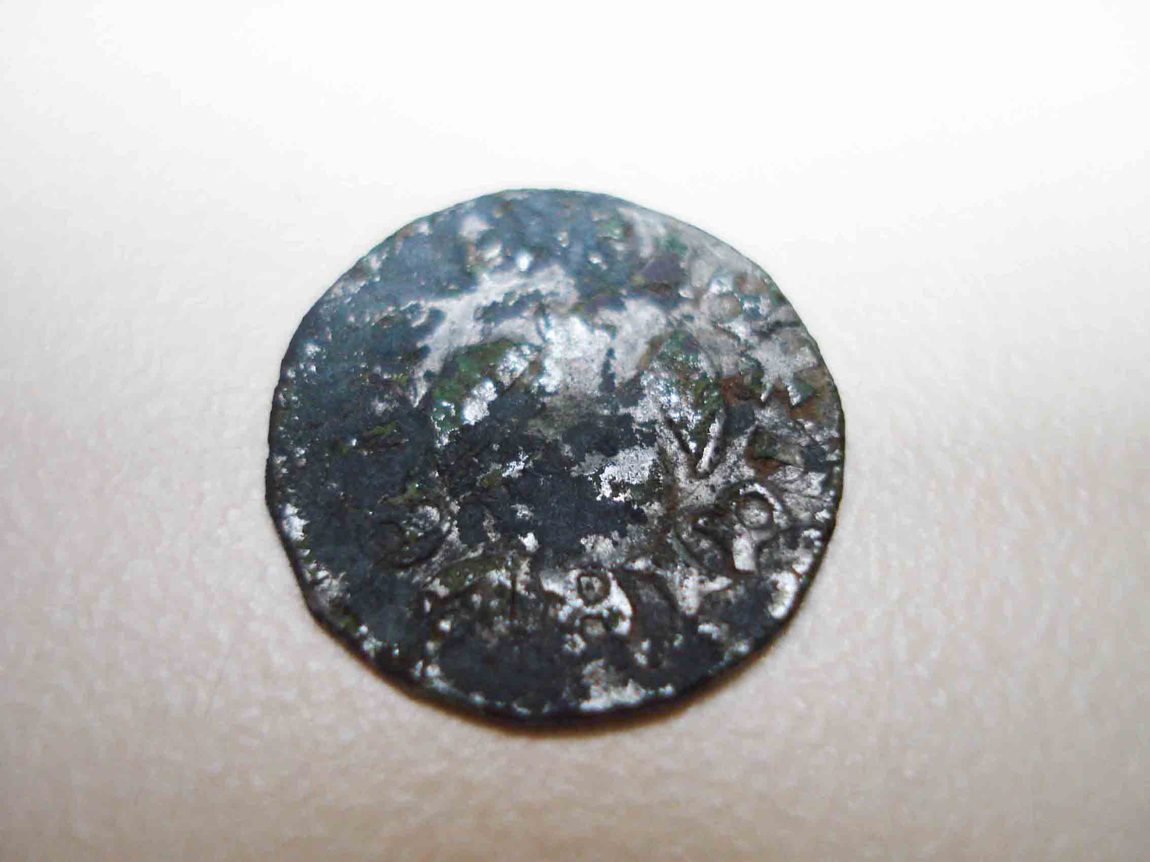 Also Marc, das ist schon ein eigenartiges Stück. Es scheint aus Brandresten zu stammen. Die Anordnung der Buchstaben ist seltsam. Wurde die Münze vielleicht überprägt? Kannst Du auf dem Original die Buchstaben entziffern?