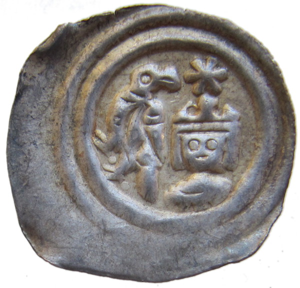 dieser Völkermarkter Brakteat ist mir aufgefallen, weil er statt des Sterns ein Kreuz