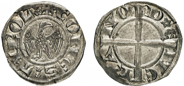 Mein zweiter Adlergroschen wäre ein CNTM M70, mit dem Wortlaut D*E ME RA NO, mit unzialem E (vor 1274/75). Leider mit deutlich schwächerer Qualität, als der M21.
