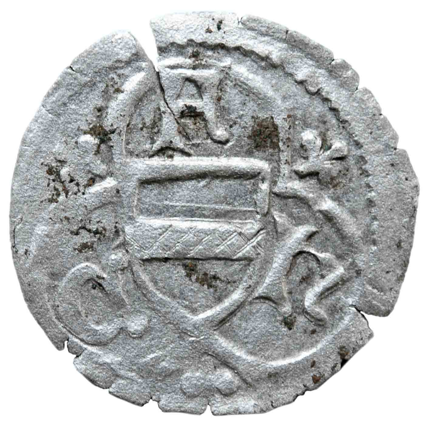 Jener von dir erwähnte Fa 9 (Ladislaus Posthumus / L - R, darüber Königskrone) entstammt ebenfalls in mehreren deutlich zuordenbaren Exemplaren diesem Fundus. Was aber nicht sonderlich verwundert, denn der wird von Koch auf "ab 1456" datiert und bei den gezeigten Schinderlingen erwähnst du die Jahre 1459, bzw. 1460. Damit liegen wir innerhalb von nur fünf Jahren. Vom Fa 9 fanden sich vergleichsweise aber nur Belege in bester Silberqualität. Habe zu Vergleichszwecken für andere interessierte Beobachter ein Foto eines Ladislaus-Pfennigs eingefügt, dass die Ähnlichkeit, abgesehen der Buchstaben und Beizeichen in den äußeren Dreipaßwinkeln, zeigt.