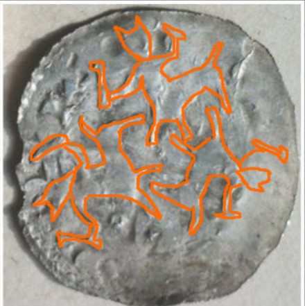 This morning I had some time and could sketch the backside of your B 44. You can watch three centaurs with horns and pointed beards. In the right hand a battle ax (?) in the left a club (?) or a fish (?). This corresponds exactly to the description in CNA I.
