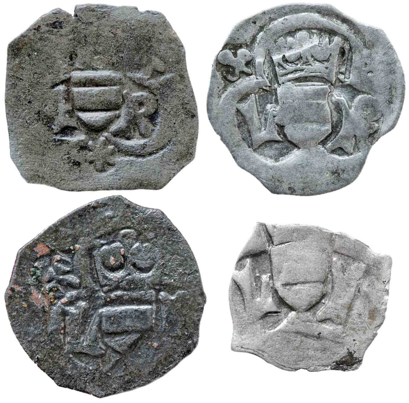 Im Zentrum der Bindenschild im Dreipaß, oben Prägeschwäche ("F."???), rechts ein "R", gegenüber ein "I". Im unteren äußeren Dreipaßwinkel ein sechsstrahliger Stern, rechts oben 5 (?, vielleicht für 1455/1465). Im linken äußeren Dreipaßwinkel ist aufgrund der Prägeschwäche leider nichts erkennbar.