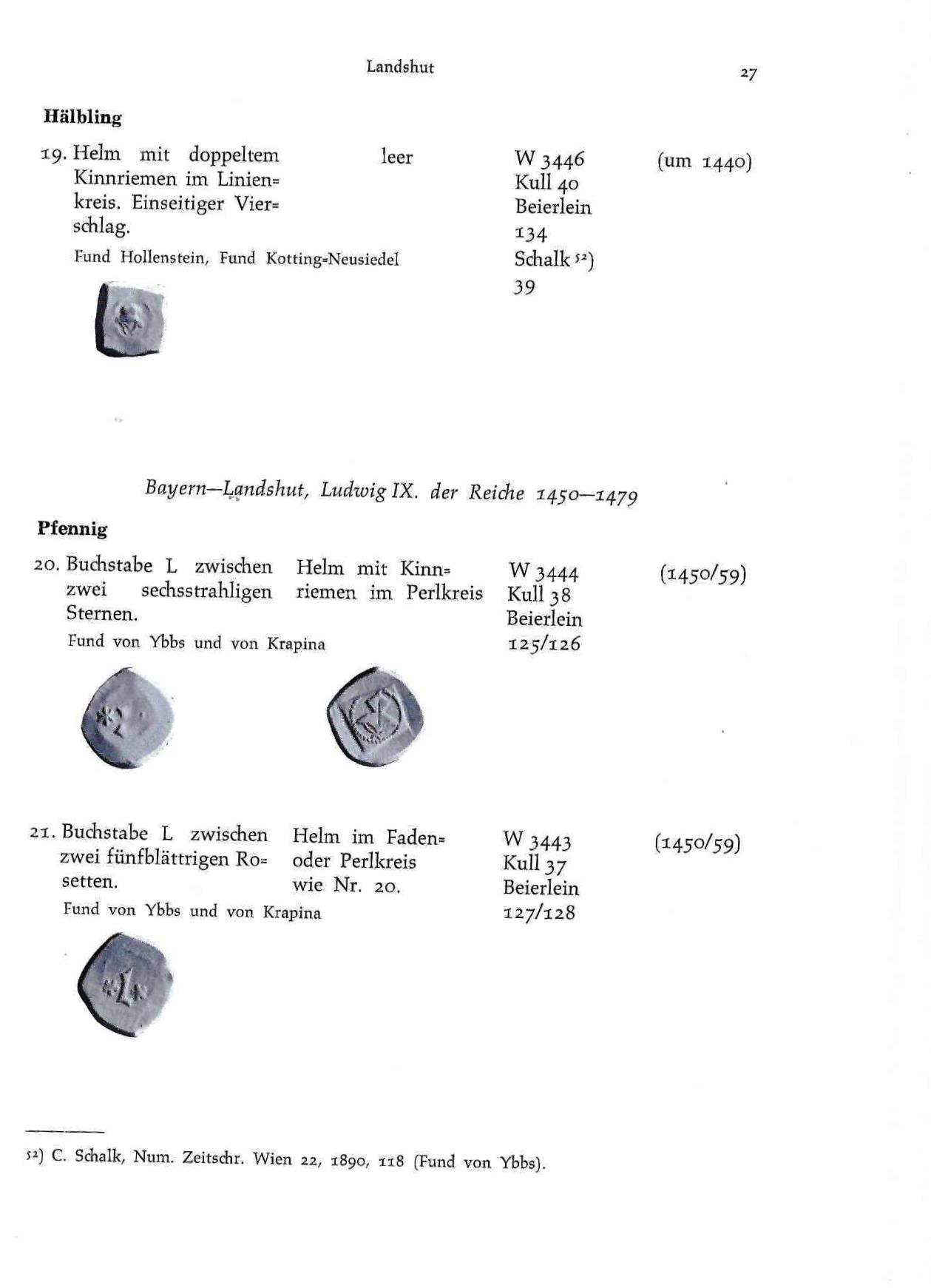 Beierlein erwähnt unter Nr. 134 einseitige Hälblinge mit Vierschlag) aus Landshut.